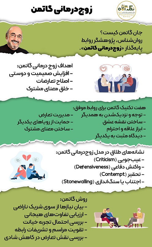 جان گاتمن، روانشناس آمریکایی، یکی از برجستهترین پژوهشگران در زمینه ازدواج و روابط زناشویی است. او بیش از ۴۰ سال به مطالعه ثبات زندگی مشترک پرداخته و نتایج تحقیقاتش در کتابهای پرفروشی منتشر شده که به چندین زبان ترجمه شدهاند. گاتمن به عنوان یکی از تأثیرگذارترین روانشناسان دنیا شناخته میشود و آموزههای او در سراسر جهان به کار گرفته میشوند. (آشنایی بیشتر با جان گاتمن)